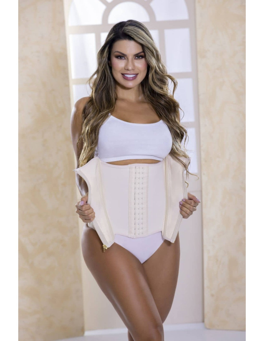 La faja cinturilla en powernet con cremallera y bandas FP838 es una prenda ajustada especialmente diseñada para moldear la cintura y el abdomen, brindando una compresión efectiva y soporte firme. Gracias a su sistema de cierre con tres broches, puedes ajustar el nivel de compresión según tu comodidad. El powernet de alta calidad permite un ajuste elástico que se adapta al cuerpo, manteniéndote cómoda durante todo el día. Esta faja cinturilla no solo estiliza tu figura, sino que también ofrece soporte lumbar, ayudando a mejorar la postura y reducir molestias en la espalda. Ideal para usar sobre un body blanco o debajo de tu ropa favorita.