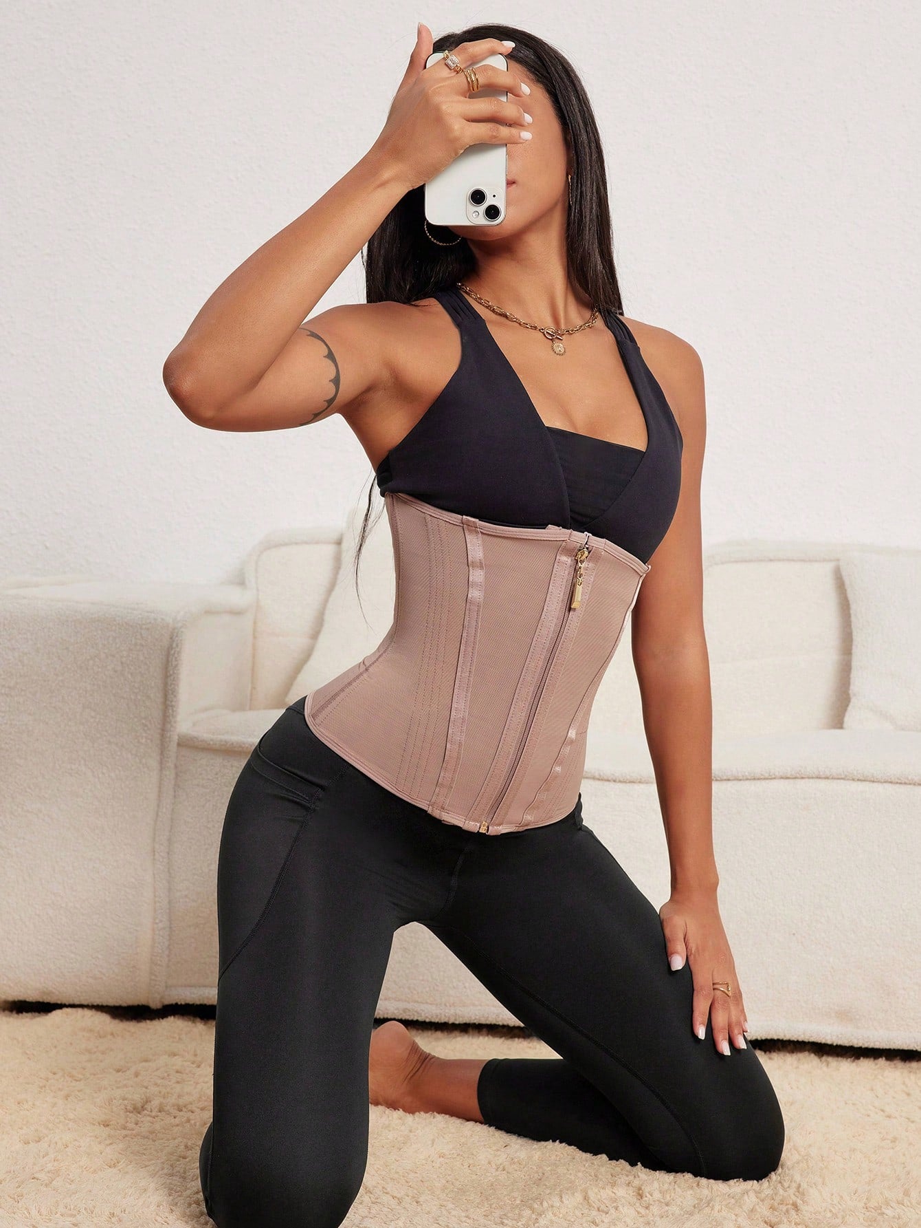 La faja cinturilla reloj de doble compresión en color cocoa está diseñada para moldear la cintura y conseguir el efecto reloj de arena. Tiene una parte interna con hileras de corchetes ajustables para regular la presión y una cremallera exterior que añade una segunda capa de compresión, logrando un look más definido y estilizado. Los materiales son cómodos y resistentes, ideales para el uso diario. Además de resaltar la figura, proporciona soporte lumbar y ayuda a mejorar la postura, aliviando molestias en la espalda. Perfecta para quienes buscan una cinturilla reloj que combine comodidad y resultados visibles.